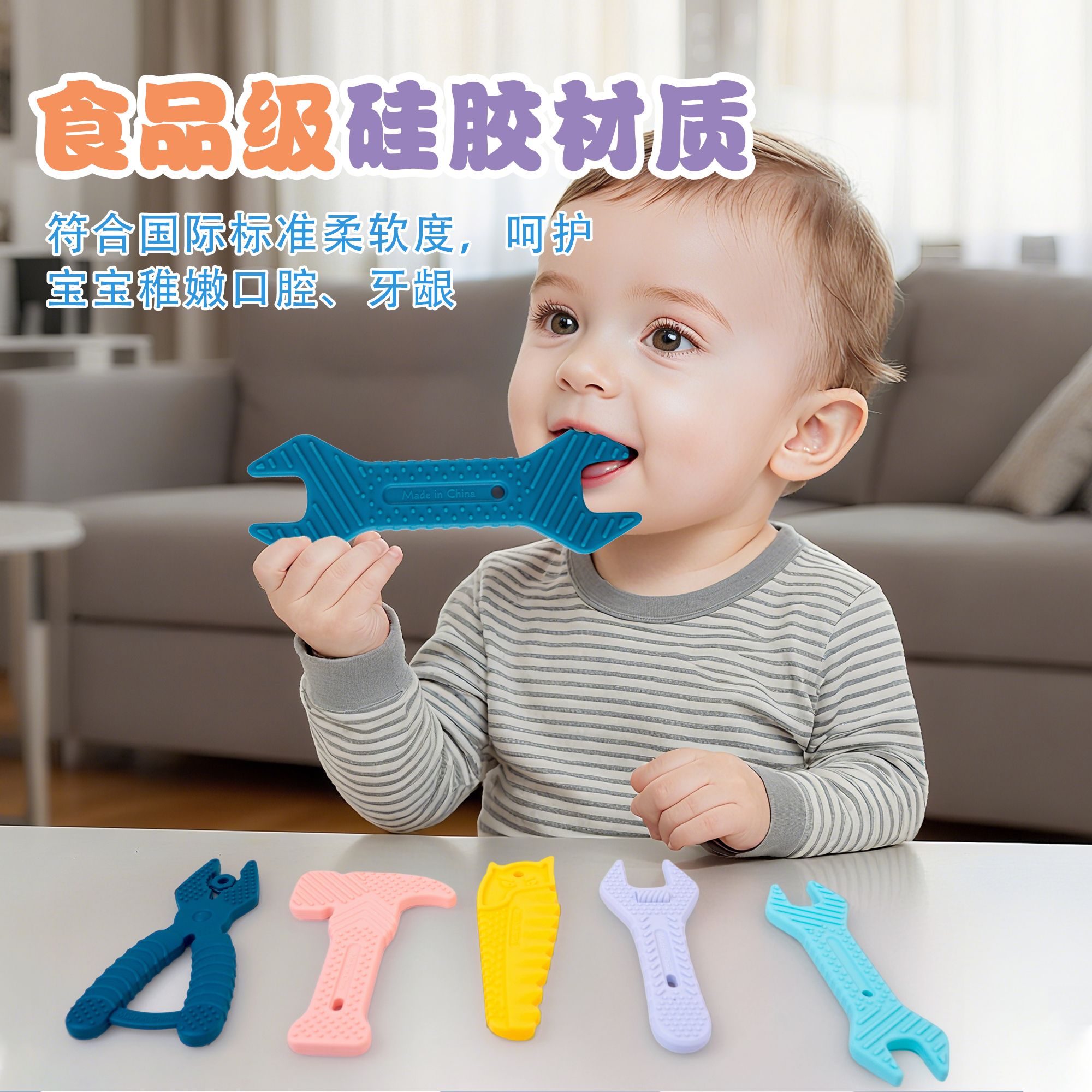 您的位置:首頁(yè) > 產(chǎn)品中心 > 硅膠嬰童用品 > 牙膠 > 亞馬遜錘子扳手牙膠嬰兒硅膠磨牙棒寶寶卡通兒童防咬手牙膠5件套