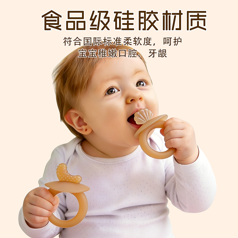 手握防吃手牙膠硅膠磨牙器寶寶咬膠硅膠磨牙水果型嬰兒牙膠,肉感硅膠材質(zhì),接近母乳形狀、